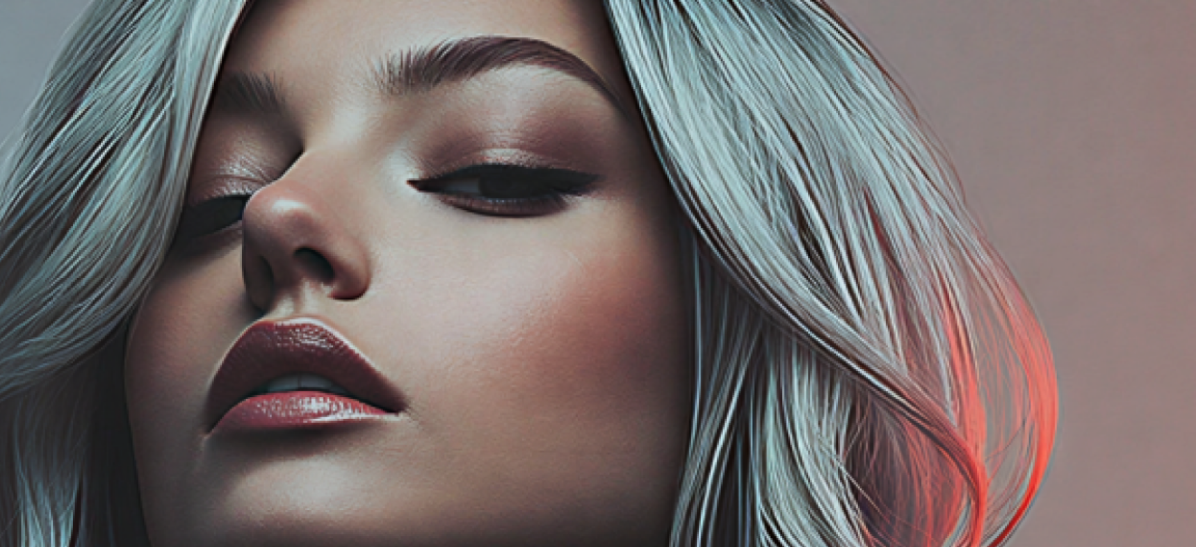 Side profile of a person with curly hair against a gradient background of red and purple hues.